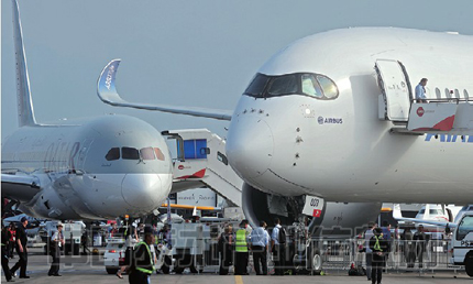 帝人一直长期为空中客车世界最大的双层客机“A380”供应碳纤维原丝和碳纤维布等材料。并且,还将首次以构件的形式,向预定在年内投入航运的新一代中型客机“A350WB”的试验飞机供应机体和机翼等主要结构材料,双方的关系正在稳步升温。 123,123