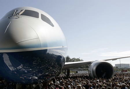 波音787(Dreamliner)中型双发(动机)宽体中远程运输机,是波音公司(Boeing Co.)1990年启动波音777计划后14年来推出的首款全新机型,由波音民用飞机集团(BCA)负责开发,在2004年4月正式启动。经多次延期后,于美国时间2009年12月15日成功试飞,标志着波音787飞机的制造项目进入交付使用前最后一个阶段,预计2010年交付使用。2011年9月27日零时20分,波音787“梦想飞机”交付全日本航空运输公司(All Nippon Airways Co.,简称“全日空”),预计2012年中旬中国将迎来自己的波音787。 123456