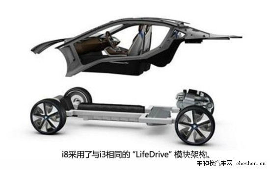 宝马i8采用了与i3相同的“LifeDrive”模块架构,这种全新的设计理念将车身结构分成了Life和Drive两个独立的部分。