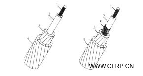 (1、碳纤维增强环氧树脂复合材料内芯;2、玻璃纤维增强环氧树脂复合材料外芯;3、第一层梯形铝导线;4、第二层梯形铝导线;5、保护性涂层或膜;)
