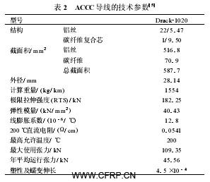 表 2 列出了 ACCC导线的技术参数 ,以供制造和使用时参考。