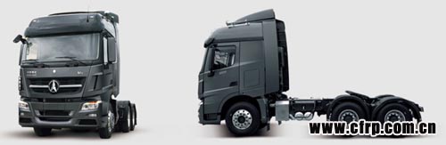 北奔在今年北京车展上展示的V3轻量化牵引车(H09)自重低于8吨。通过优化并匹配动力传动、制动、转向、车电及发动机辅助系统等不同成本的系列化模块,组合形成4x2、6x2、6x4、8x4四种驱动型式的牵引车、载货车、自卸车系列车型。