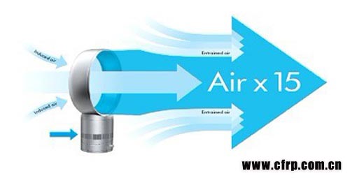 没有扇叶,怎么会吹出风来呢?据戴森的工程师介绍,戴森AM01台式无叶风扇使用了戴尔的Air Amplifier™(气流倍增)技术。该项技术通过环状气流倍增器中的环形狭缝对气流进行加速,形成由弧形翼面引导喷射方向的喷射气流,并将周围的空气源源不断地卷入气流(这个过程被称为“导入和牵引”)。