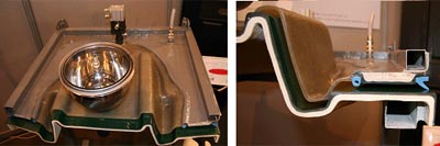 RTM和LRTM工艺也可以使用预制件和嵌件,当使用预制件时可得到高纤维体积含量的产品。LRTM工艺产品可以不上胶衣,只要一般的脱模蜡,产品就可脱模。但RTM产品如不用胶衣,脱模较为困难。